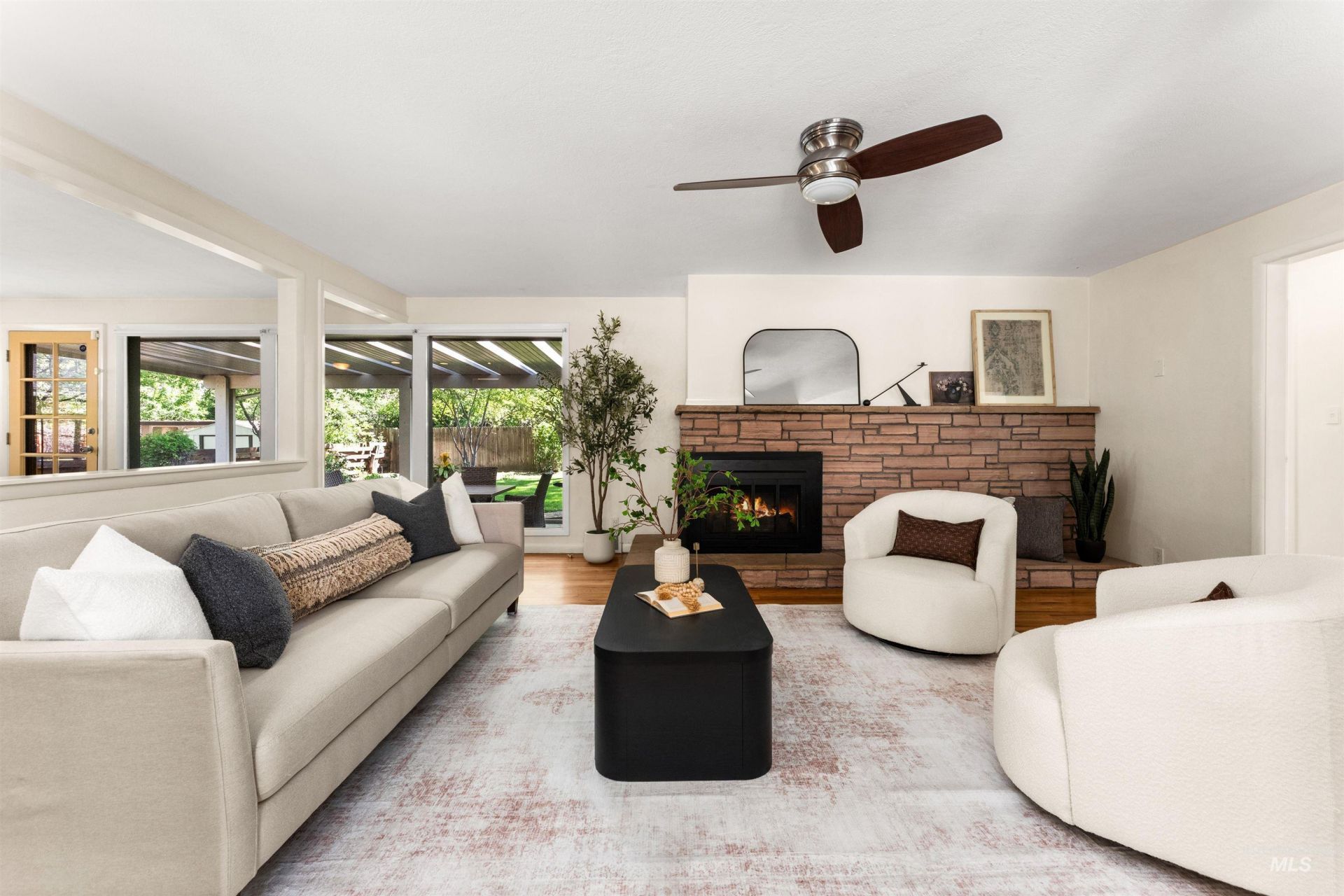 Set on a large lot in the mid-century Cruzen Mountain View neighborhood on the Boise Bench, this adorable single-level home offers classic character and comfortable living. The cozy living room features genuine hardwood flooring and a ledgestone gas fireplace that reflects the homes original mid-century era. A separate sitting room provides ideal space for a small library, reading nook, or lounge. The updated kitchen features dark quartz countertops, a six-burner range, a breakfast bar with seating, open cabinetry, and a dedicated dining area overlooking the covered patio and lush backyard through three large floor-to-ceiling windows that fill the space with natural light. Three bedrooms with classic built-in closets are tucked away from the main living areas, along with two full bathrooms. The spacious backyard features mature landscaping, a garden area, and a large covered patio perfect for unwinding at the end of the day. Additional highlights include a laundry room off the kitchen, a two-car garage, and a backyard storage shed. The home is conveniently located minutes from shopping, restaurants, and Garden City, and less than 10 minutes from Downtown Boise, with easy freeway access.